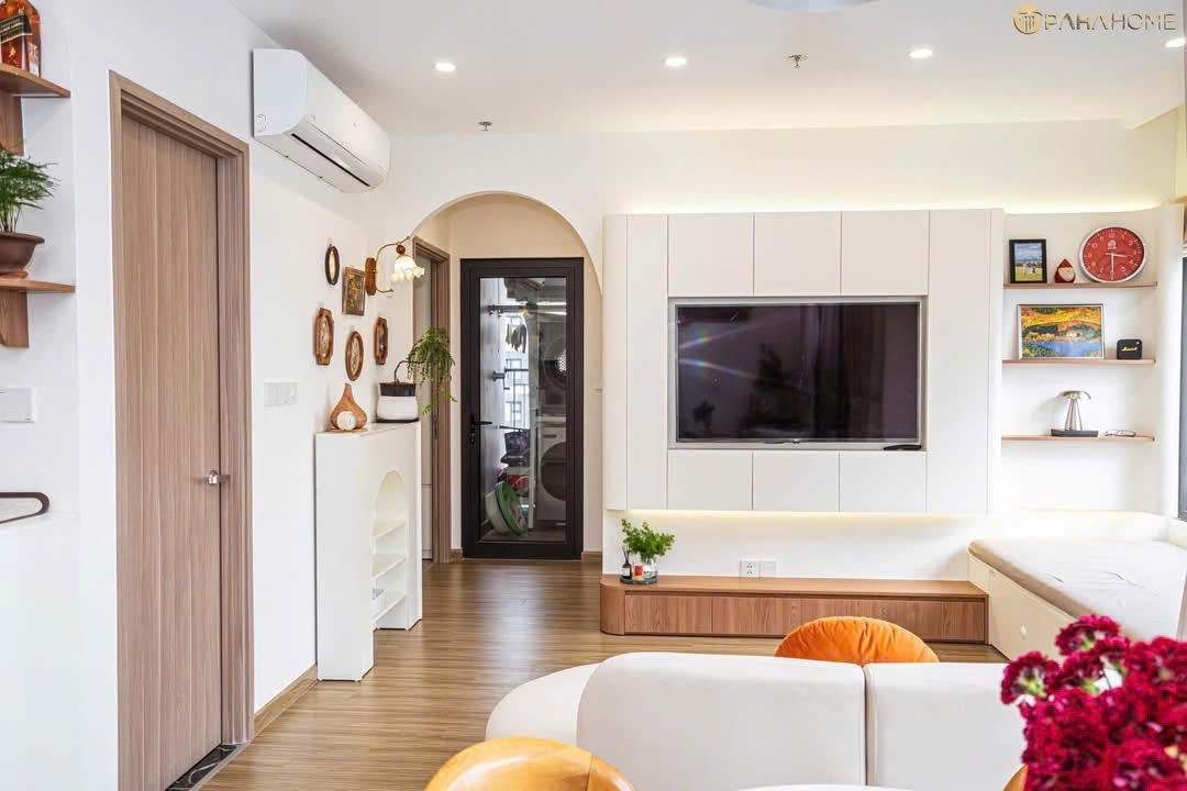 Dự án nội thất chung cư được Nam Việt triển khai với tâm thế biến mỗi mét vuông nhà ở thành một nơi vỗ về cảm xúc. Lấy cảm hứng từ phong cách Scandinavian, căn hộ là sự kết hợp nhuần nhuyễn giữa tông màu trắng kem tinh khôi, vật liệu gỗ sồi ấm áp và những đường nét kiến trúc vòm mềm mại, tạo nên một tổng thể vừa hiện đại, vừa đậm chất thơ giữa lòng phố thị.
