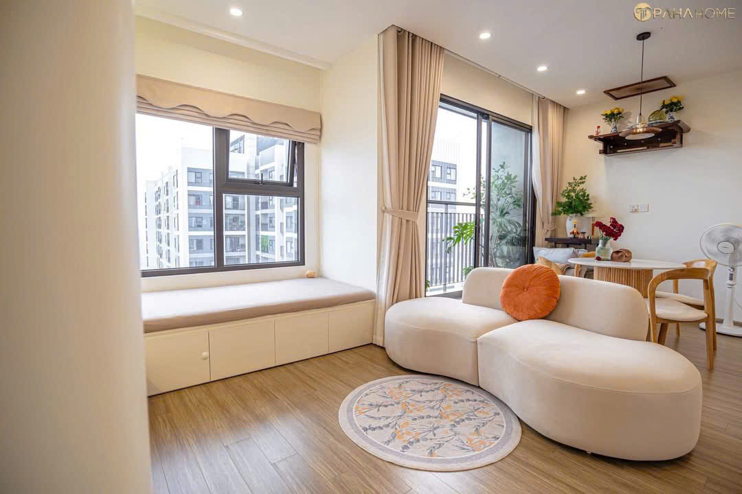 Điểm nhấn khác biệt của dự án chính là sự tận tâm trong cách bài trí decor. Từ hệ kệ tivi âm tường tinh gọn, bục ngồi bên cửa sổ (Bay window) thư giãn đến những mảng tường gốm trang trí và cây xanh được sắp đặt khéo léo, tất cả đều toát lên vẻ chỉn chu và gu thẩm mỹ khác biệt. Hệ thống ánh sáng trung tính được tính toán kỹ lưỡng, giúp căn hộ luôn lung linh, ấm áp và sẵn sàng cho những khoảnh khắc nghỉ ngơi đích thực.