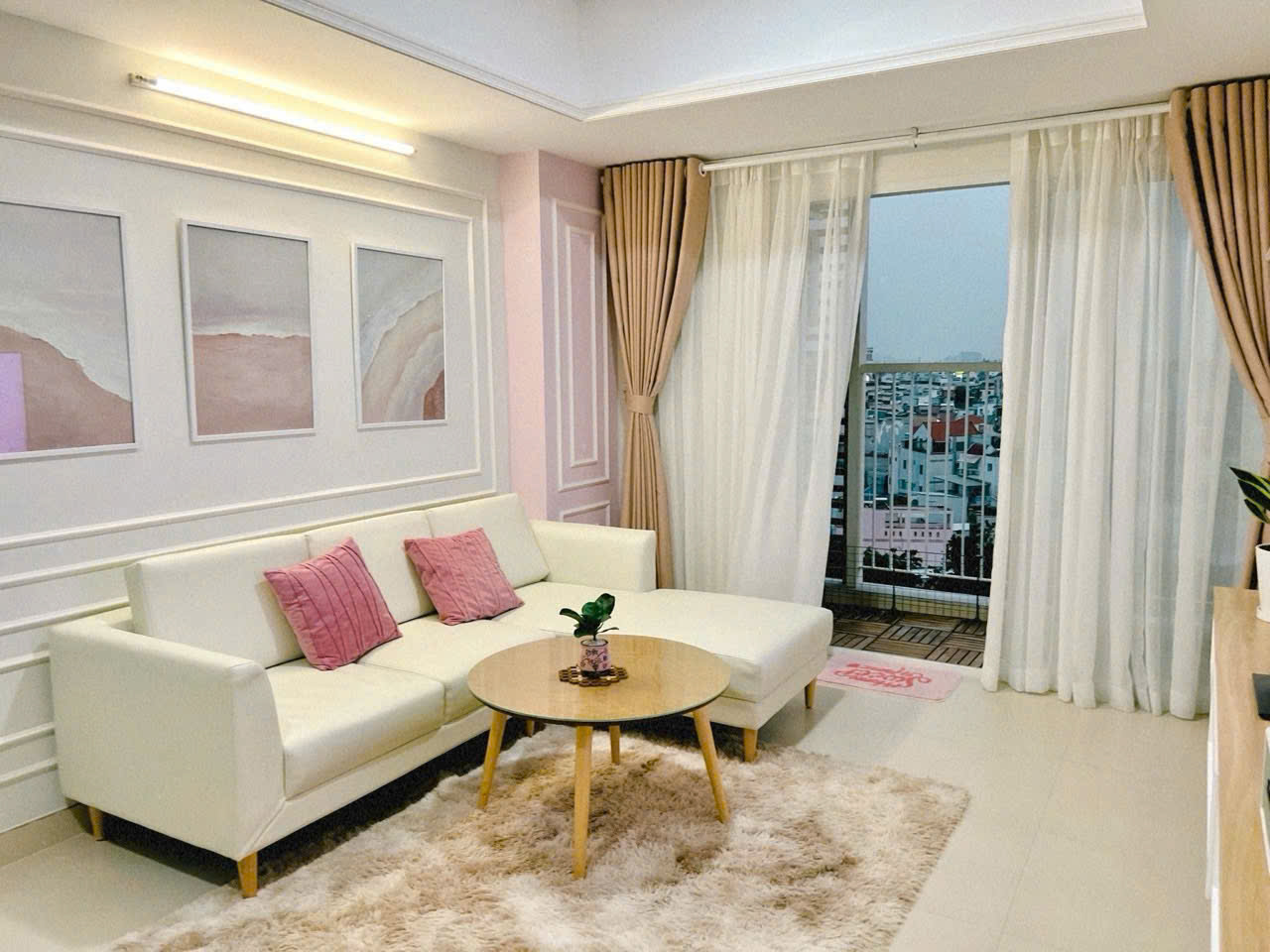 Từng món đồ nội thất, từ bộ sofa vải nỉ êm ái, chiếc thảm lông mềm mại đến hệ kệ tivi treo tường thông minh, đều được đội ngũ Nam Việt tuyển chọn và lắp đặt với độ chính xác cao. Nghệ thuật chiếu sáng được đan xen khéo léo giữa đèn downlight âm trần và đèn decor trang trí, giúp không gian luôn lung linh và tràn đầy sinh khí vào mọi thời điểm trong ngày.